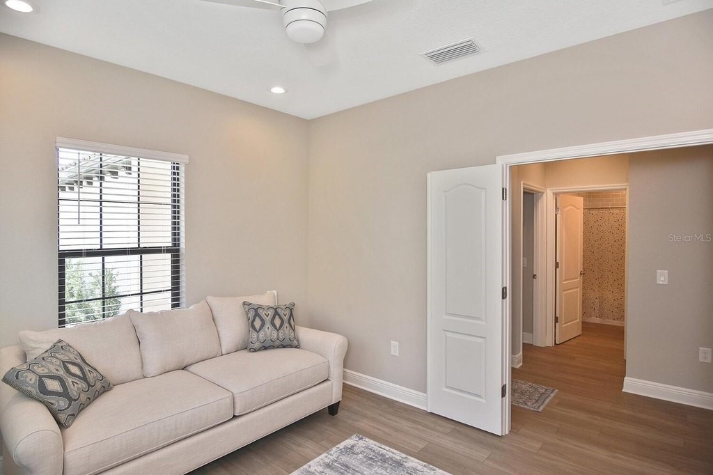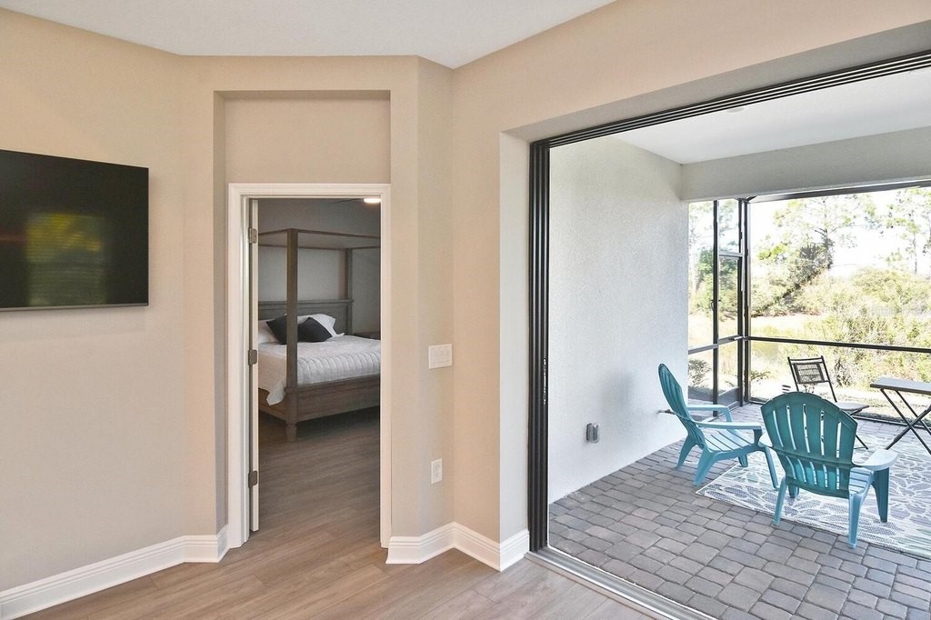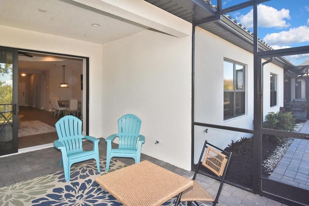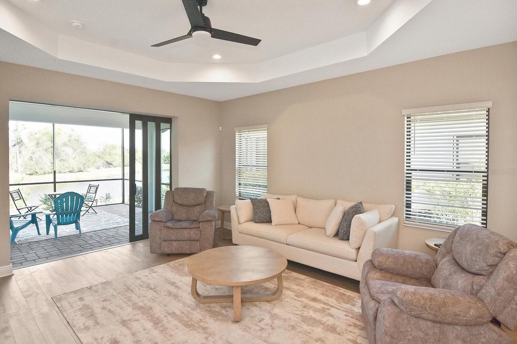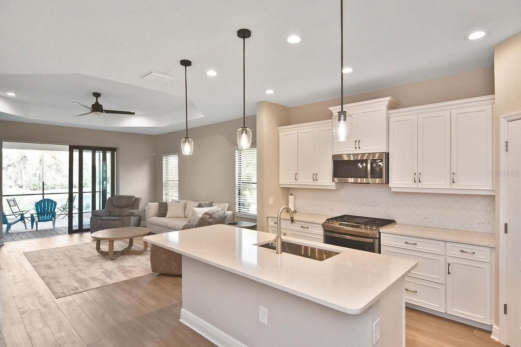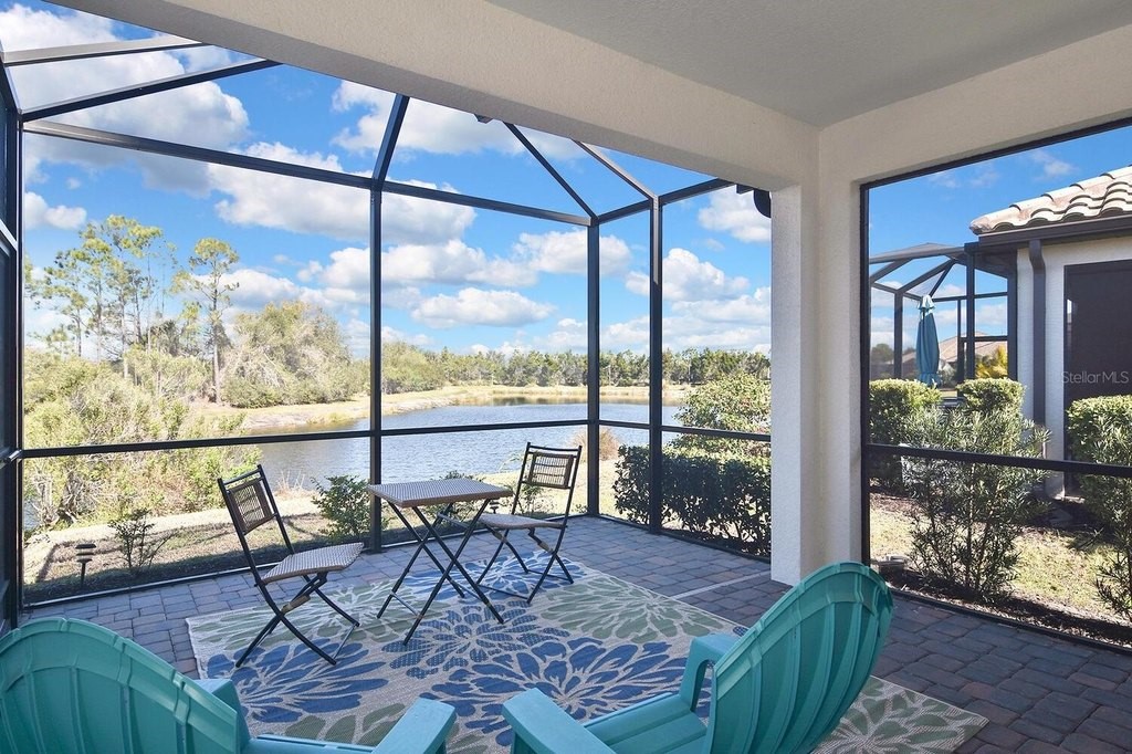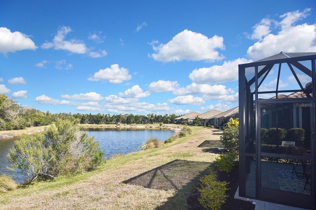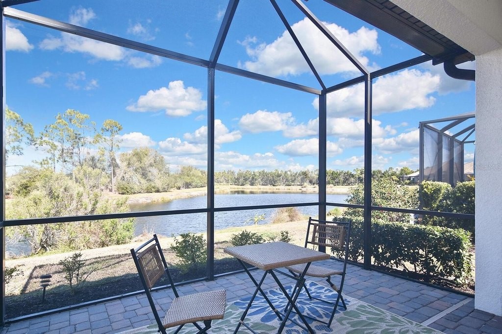 Rarely lived-in 2 BR/2BA villa with a den in pristine condition! This nearly brand-new home features impact windows and an open floor plan centered around a beautiful kitchen with white cabinetry, quartz countertops, stainless steel appliances, and a spacious walk-in pantry. The flexible den is ideal for an office or guest space. Enjoy peaceful pond views from the extended, covered lanai or relax on the charming covered porch. Conveniently located directly across from the community pool for easy access to resort amenities. Ample closets and a spacious two car garage. So many amenities are not required but offered. Golf cart community makes it easy to go to club, fitness center, bocce courts, corn hole, dog park of just visiting new found friends. Convenient to beaches, shopping and downtown Dearborn. Come see it today!
